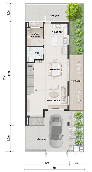Diện tích đất: 120m² (6mx20m)